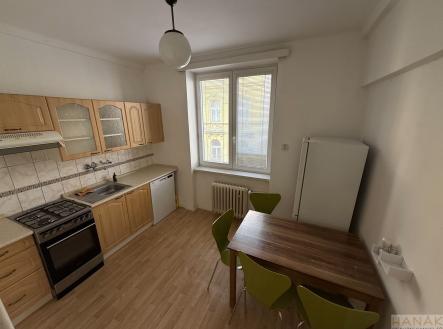 Byt je světlý, s neprůchozími pokoji a je určen spíše k modernizaci ( k pronajímání lze použít ihned bez dalších investic ) – má plastová okna, zachovalé podlahy a kuchyň s myčkou, plynovým sporákem a elektrickou troubou. Součástí bytu je také balkon (3,5 m²) a sklepní kóje.