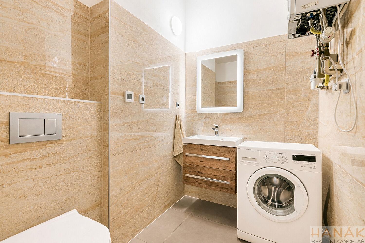 V bytě proběhla před 2 roky rekonstrukce koupelny jež je dominantou bytu s moderním sprchovým koutem a podlahovým topením a samostatné velké toalety, kde je umyvadlo, pračka a kotel. Kuchyně je vybavena vestavnými spotřebiči – lednicí, sporákem, varnou deskou, digestoří i mikrovlnnou troubou. Vytápění v bytě je řešeno vlastním plynovým kotlem, takže si teplo přizpůsobíte vlastním potřebám.