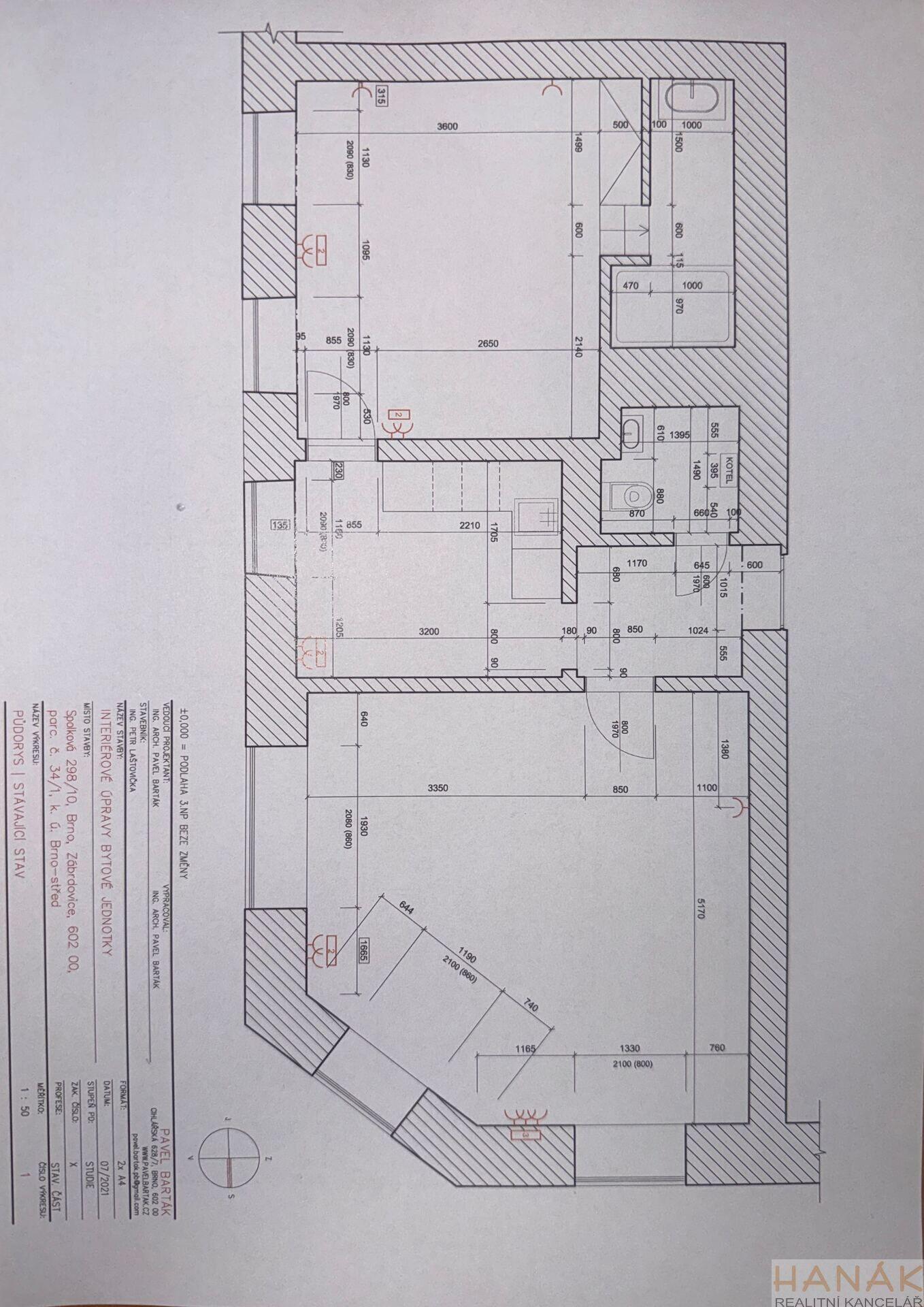 Byt se nachází ve 3. nadzemním podlaží cihlového domu bez výtahu a je orientován na dvě světové strany (východ / sever), což zajišťuje dostatek denního světla a příjemnou teplotu po celý rok. Vysoké stropy dodávají bytu vzdušnost, světlo a charakter, který se jen tak neokouká a vytváří příjemný loftový nádech, který ocení každý, kdo má rád prostor a lehkost bydlení.